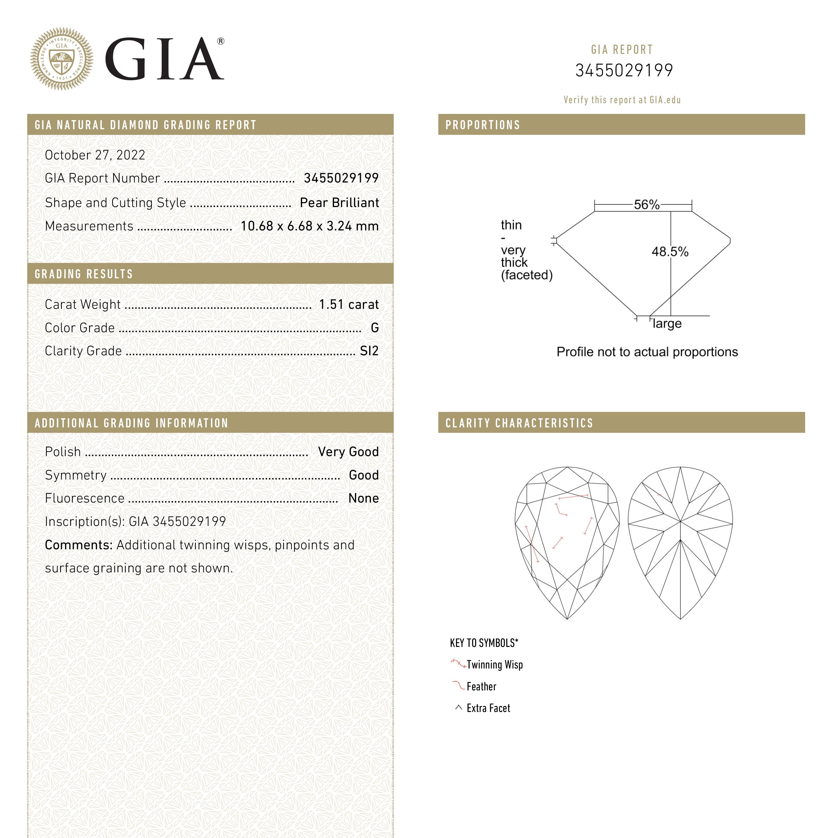 1.51ct 10.68x6.68x3.24mm GIA SI2 G Modern Antique Pear Brilliant 25086-01